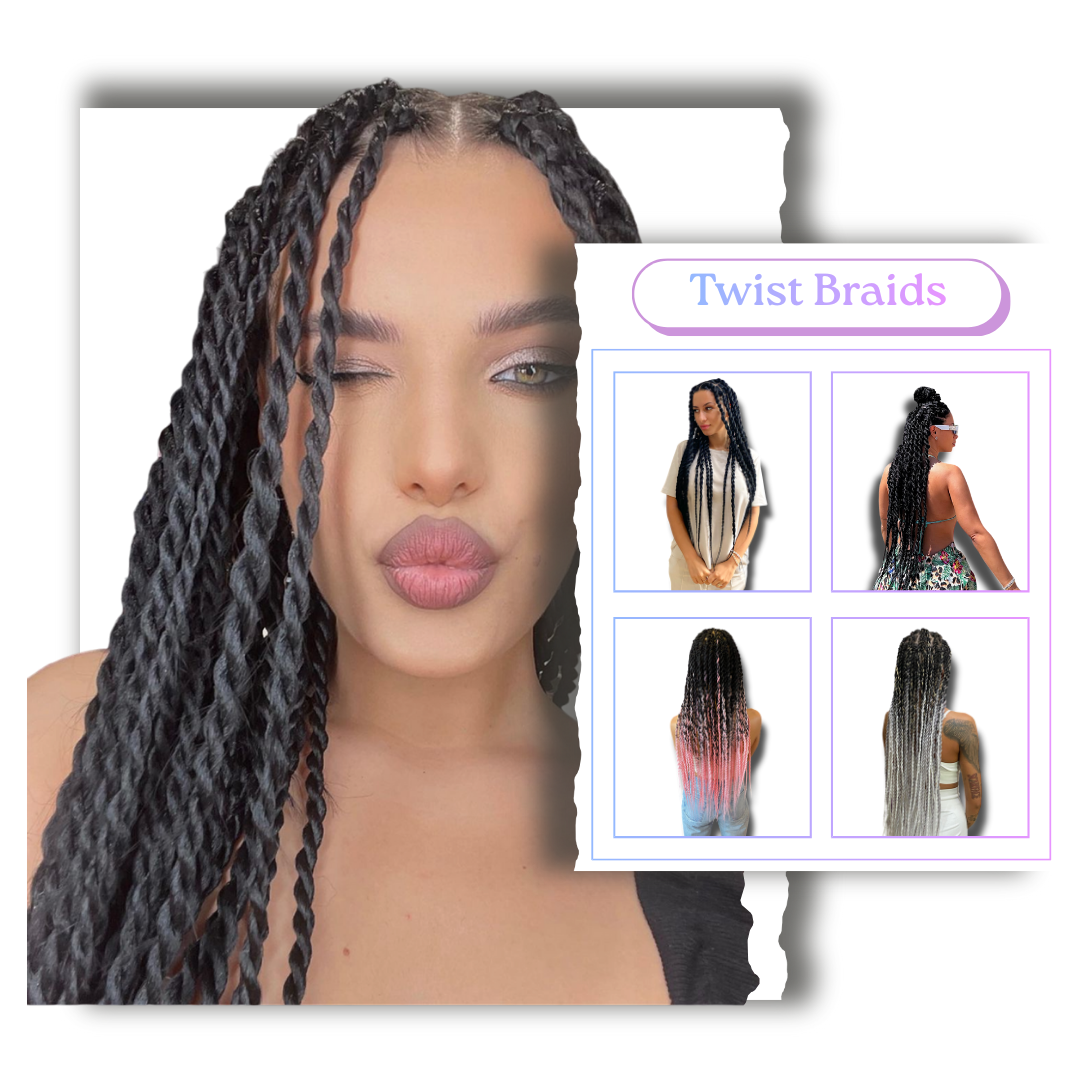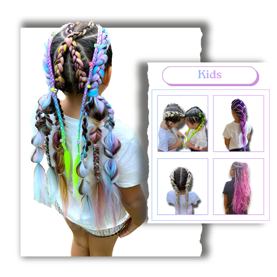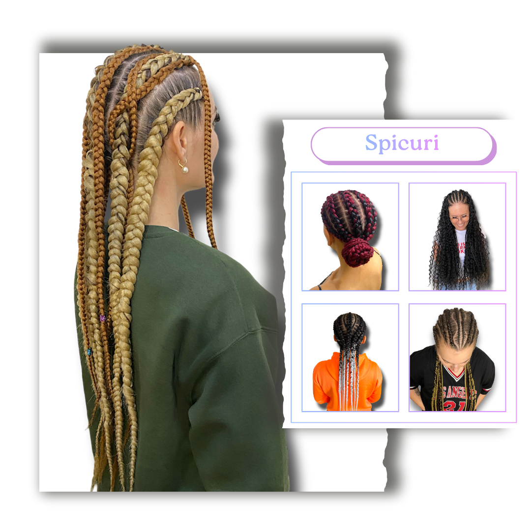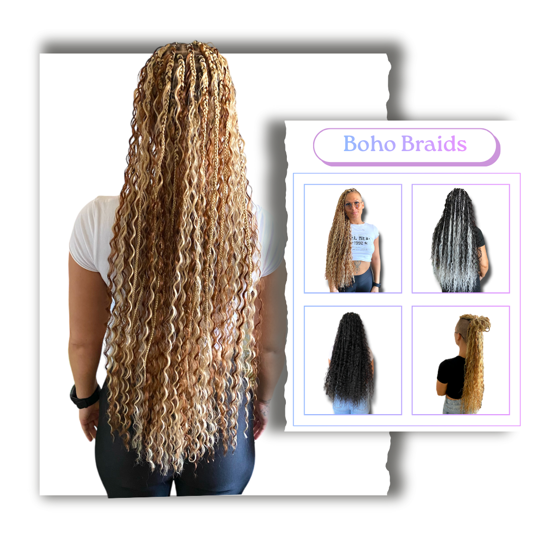 Box Braids, Boho Braids, Twist Braids, Ponytails cu extensii, împletituri pe scalp, Afro Alungire, Dreadobucle, Aplicare fire glitter
